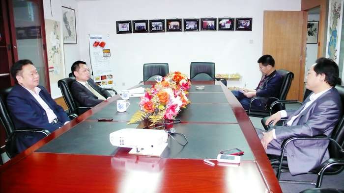 安楠会长与中国长寿促进会税勇会长(左一)洽商合作 安楠会长和崇州市赛克斯塑胶制品厂负责人进行座...