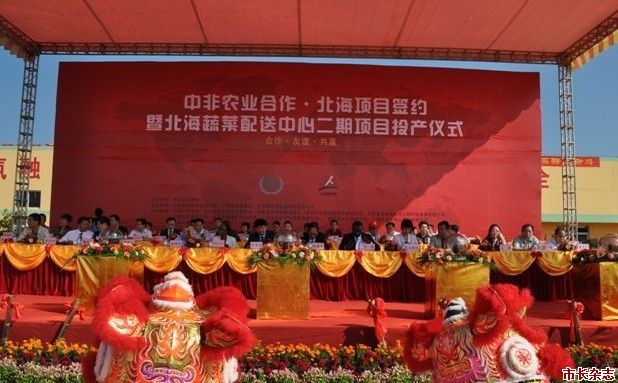 “中非农业合作.北海项目签约“活动是本次系列活动的重头戏,活动由中非民间商会主办,中非民间商会直属分会和广西北海新中盛集团联合承办。中国休闲农业 协会会长舒惠国、世界华人联合总会主席姜林、北海当地官方、来自部分非洲国家的企业家及驻华大使馆官员参加了活动开幕式。