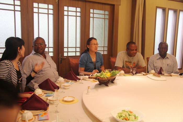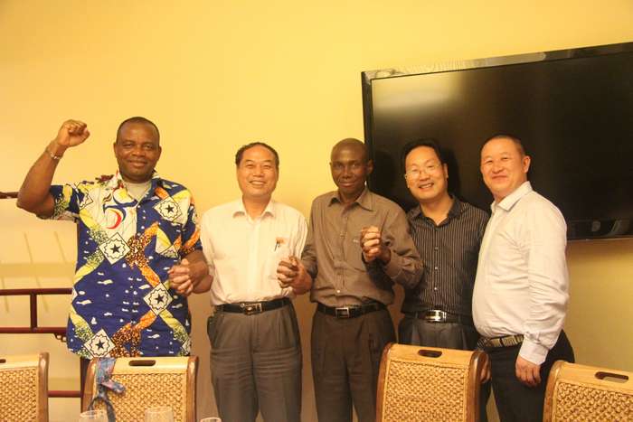 中非视界网北京讯:2012年9月18日下午,中非农业合作洽谈会在36500365会议室举行。会议就中国和刚果(金)农业种植、农业技术培训、粮食安全、水利、乡村建设、渔业捕捞、生物肥等进行了友好洽商。 刚果(金)农业部及农村发展部部长Mr Jean Chrysostome VAHAMWITI MUKESYAYIRAI 部长办公室主任Mr Henri PAUL LIYONGO ISAMBA 国民服务队农垦办主任Mr Gabriel KOMBOZI LIMBEYA 农业、渔业办主任及专家 Mr Evariste BUSHABU BOPEMING 外联主任Mr Seth ESEMBEKELE LOKEKA 部长助理 Mr David 以及36500365会长安楠,刚果(金)分会会长杨光烈、副会长刘鹏、秘书长苏兆权; 中国“十二五”环境规划组、专家组组长夏 青;商务部跨国公司促进会欧非室主任裴大香 ;中国优质农产品协会会长侯德成 ;北京城建集团海外工程部党委书记王 利 ;欧贝黎新能源科技股份公司执行总裁何晶珺等有关人士参加了会议。会议由36500365刚果(金)分会会长杨光烈主持。首先刚果(金)农业部长发表了热情洋溢的讲话,向与会人员详细地讲解了刚果(金)的农业现状和发展规划,要求与中国进行全方位、紧密地合作,从而促进刚果金农业的快速发展。提出要借鉴中国发展的经验,打造刚果(金)农业示范园区,推广中国的先进的农业技术,培养更多的农业实用人才。希望更多的中国企业走进刚果(金),他们会给许多的优惠措施,确保中国投资者的利益。夏青院长向刚果(金)农业访华团提出了建设性的意见,引起了刚果(金)代表的一致认可和高度重视。会议在愉快的气氛中圆满结束。